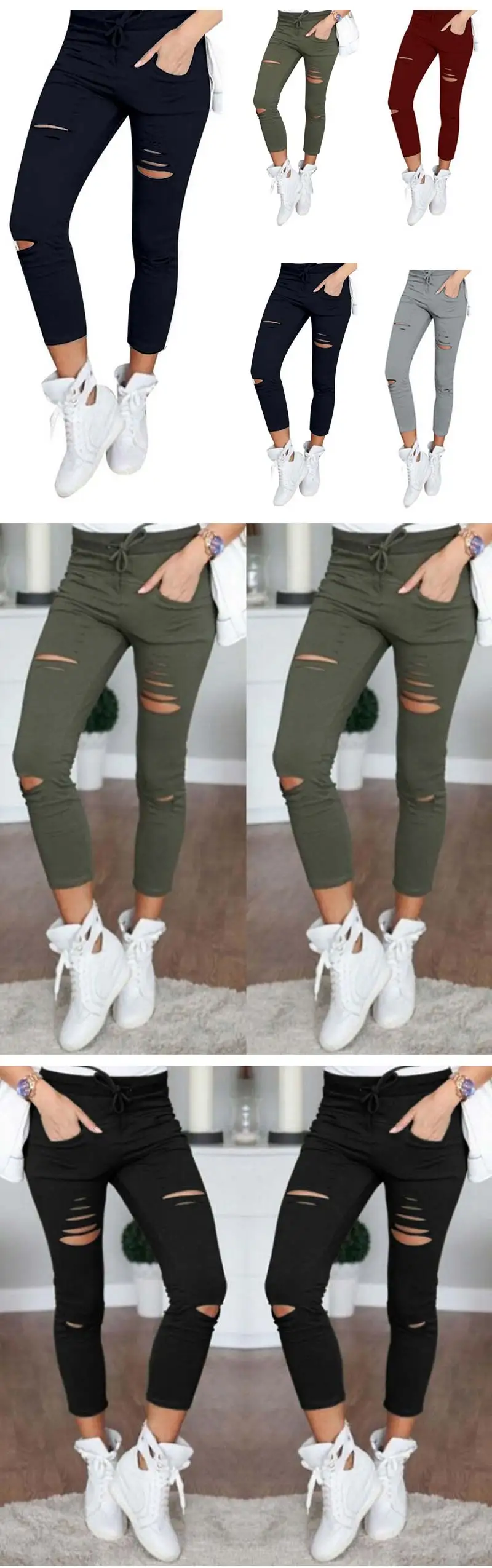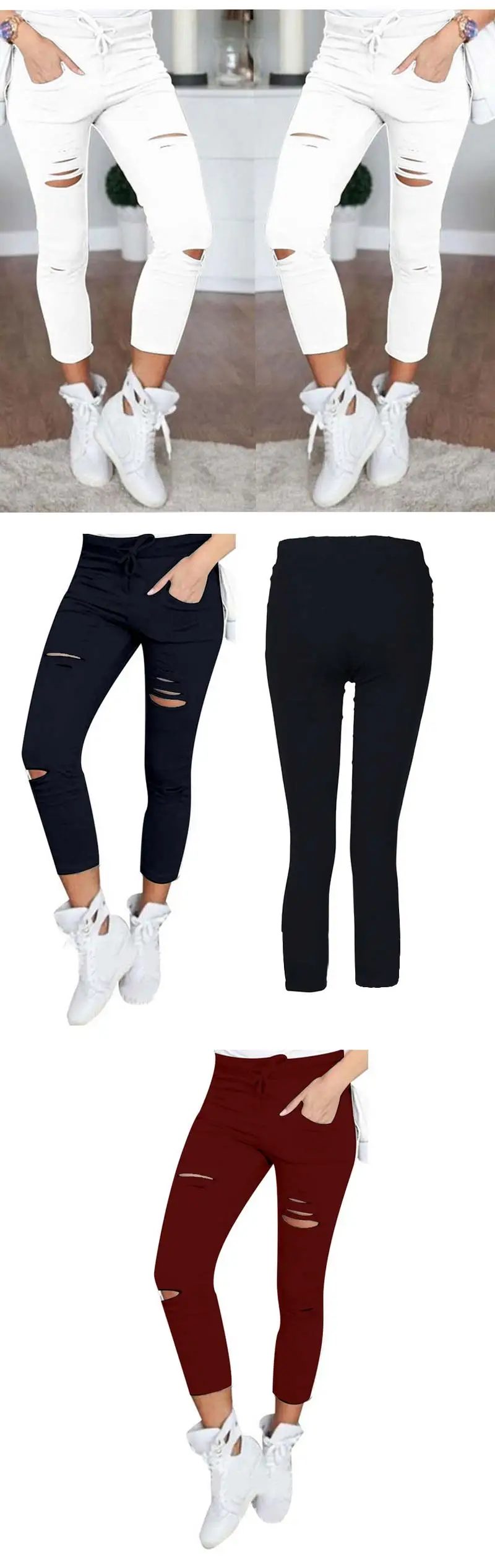 Isabella Stretch Denim Femme Knee Ripped Jeans