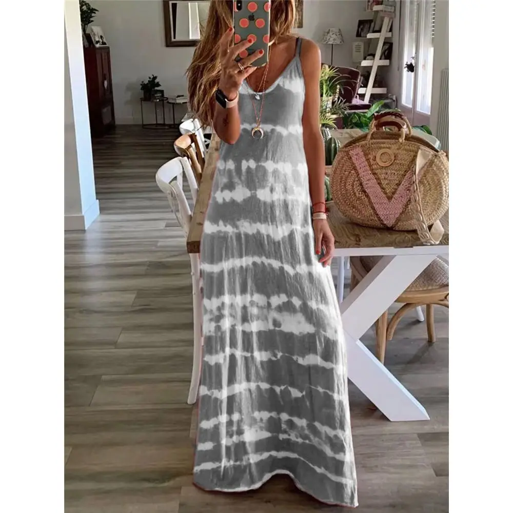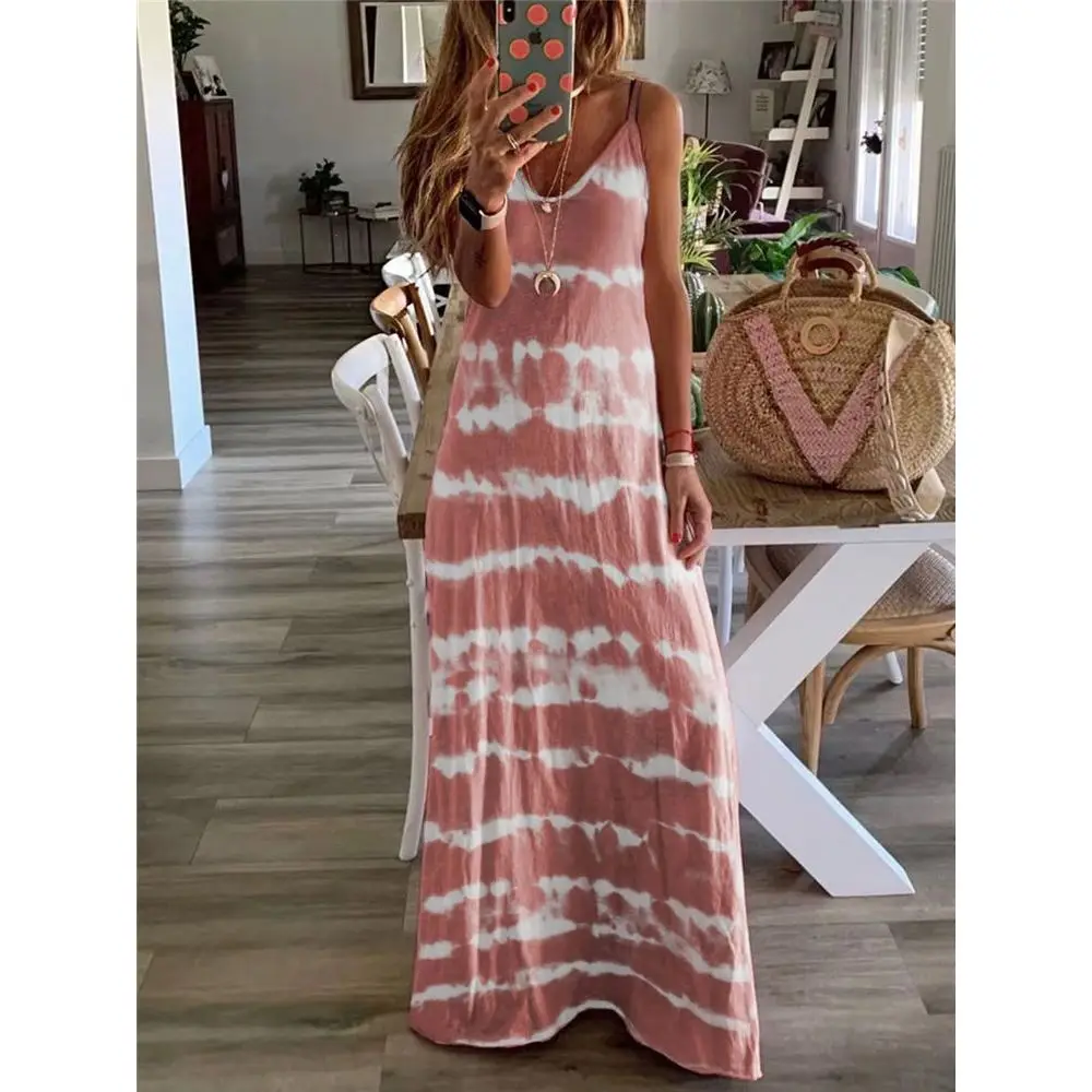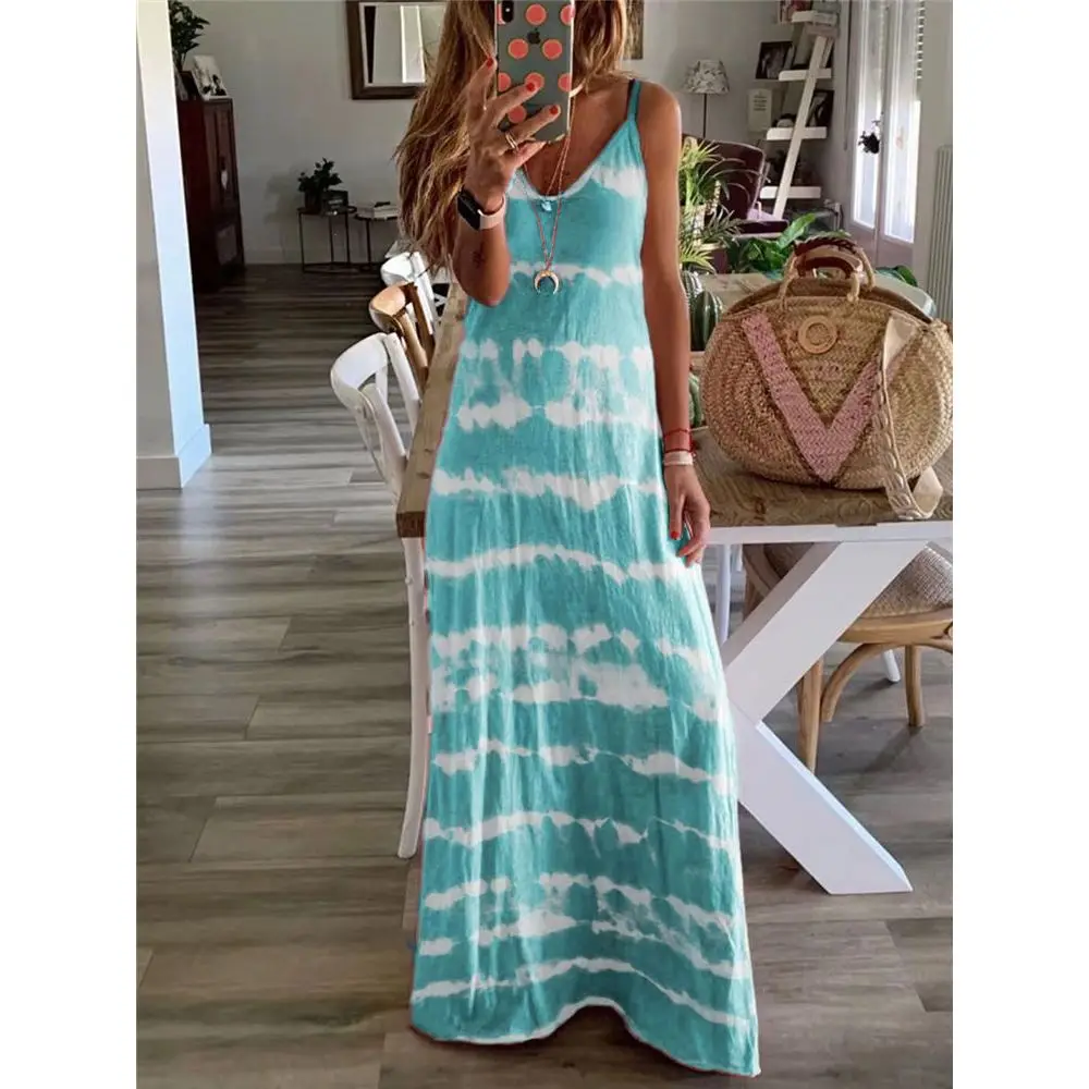 Emma Tie Dye Print Spaghetti Strap Maxi Vacation Dress